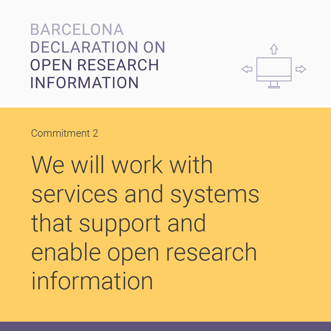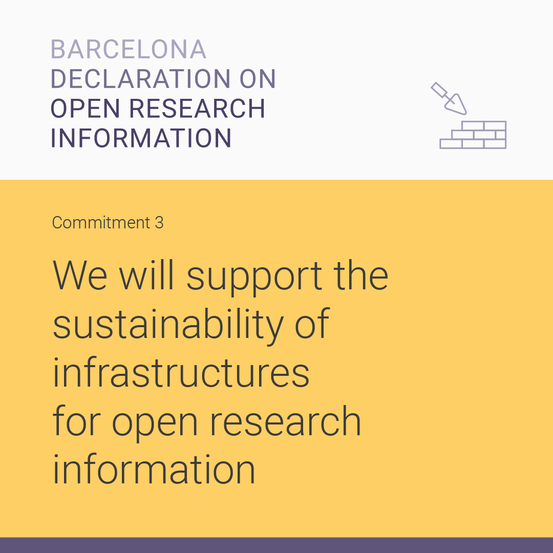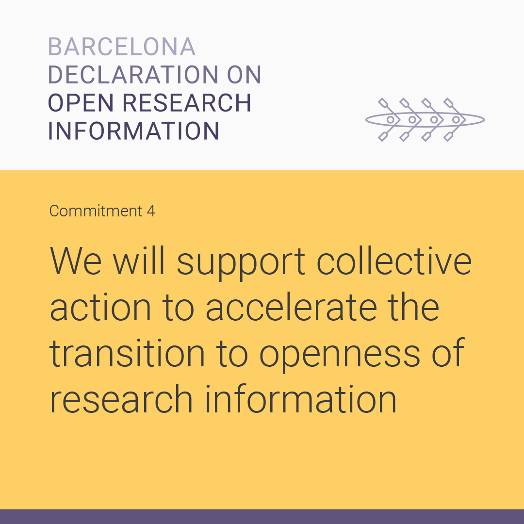 An image containing commitment three: We will support the sustainability of infrastructures for open research informationAn image containing commitment four: We will support collective action to accelerate the transition to openness of research information